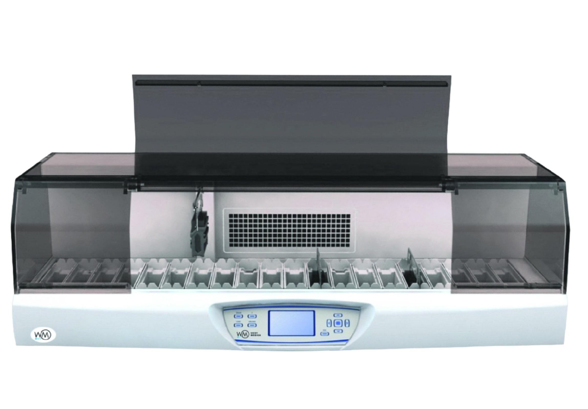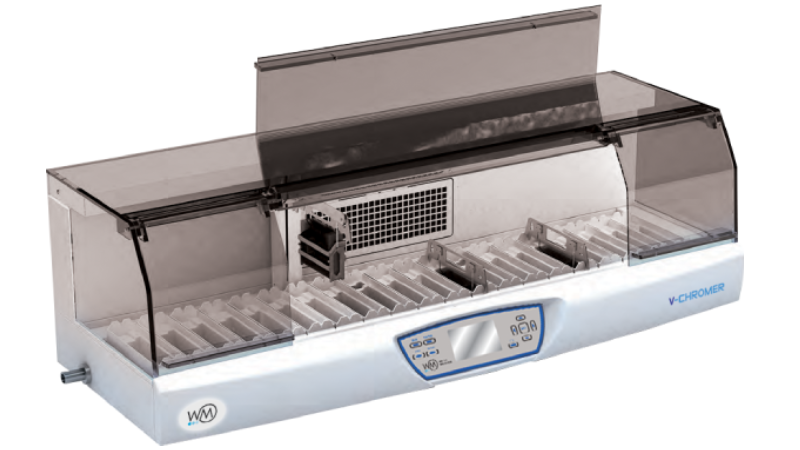 Automatisierter Multistainer für die Tiermedizin. Standardisierte Färbung von Objektträgern mit der Möglichkeit, Protokolle auszuwählen und anzupassen.